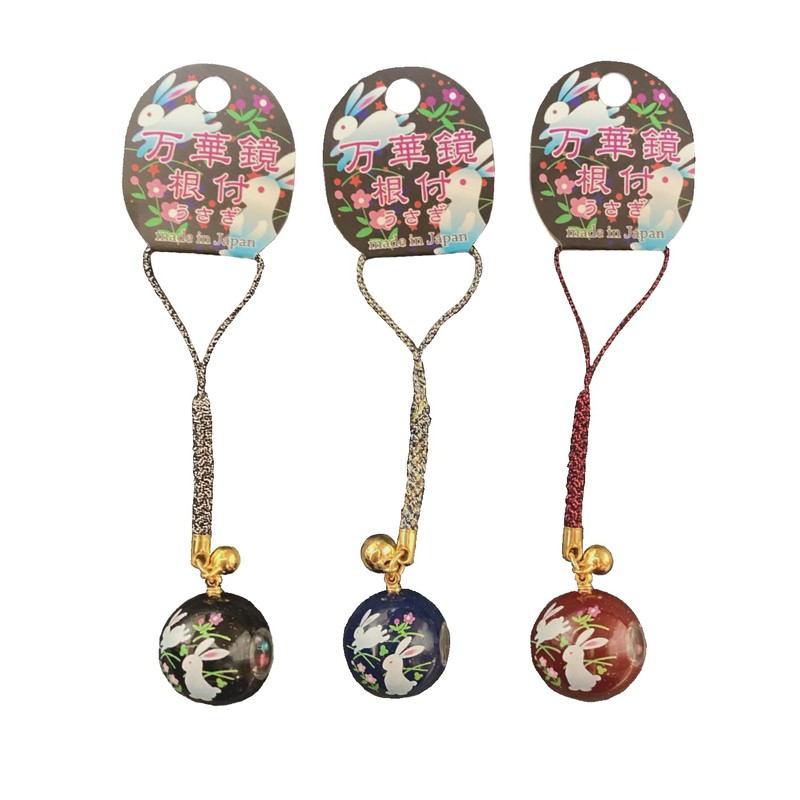 Kyou Netsuke Key Holder, Made in Japan, Paint Kaleidoscope Rooted Rabbit 3 Color Set