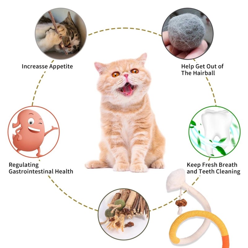 🐾 Enhances Oral & Dental Health : Kyouki Cat Chew Toys are designed to naturally clean and grind your cat's teeth, effectively reducing plaque and tartar buildup,promote proper chewing behaviors, and support the healthy growth of permanent teeth, all while ensuring fresh breath and improved oral hygiene.