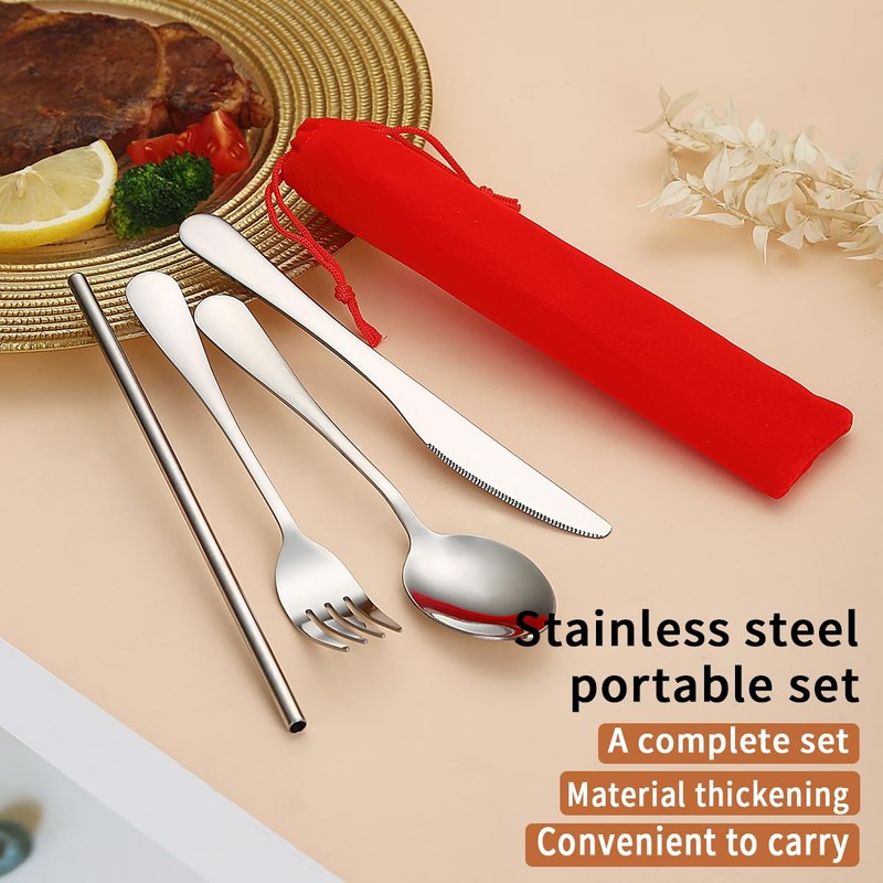 Kyraton Portable Flatware, Reusable Camping Flatware, Bento Box Flatware, Silverware For School/Work/Office/Outdoor, Dishwasher Safe, Set of 4 Pieces