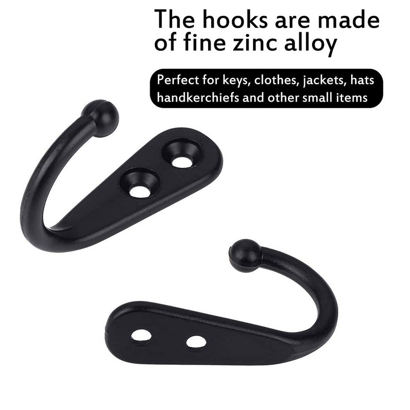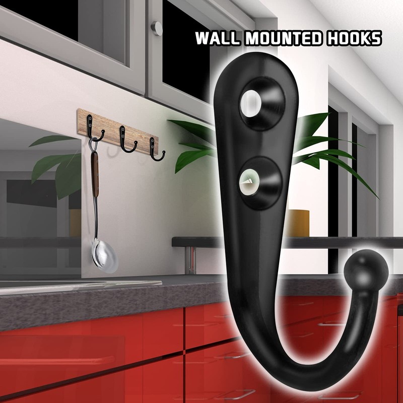 Kyrio Wall Mounted Coat Hooks with Screws Coat Hooks Cup Hooks Hangers Rustic Hooks for Bag Hat Keys Backpack Door Bedroom Holder Hanger (Black)