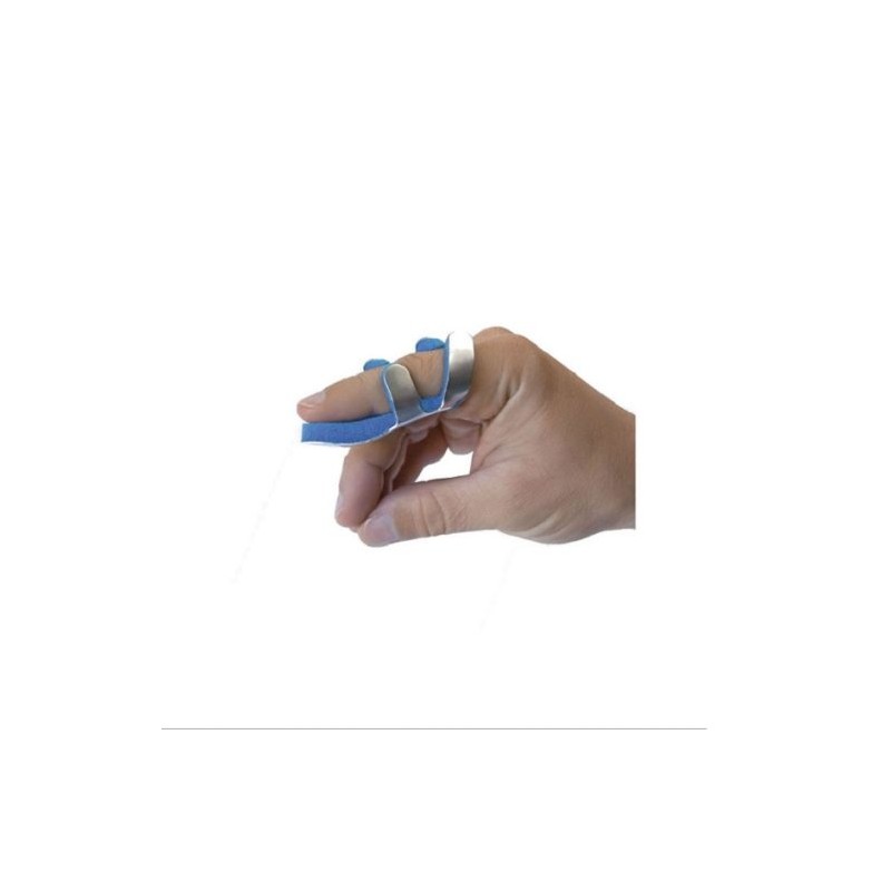 Made by the brand Orliman Ref OM6201, made of malleable aluminum with an interior fabric lining, it can be easily adapted to any finger without the need for a closure system. Can be used in either hand. The foam prevents perspiration in the finger area.