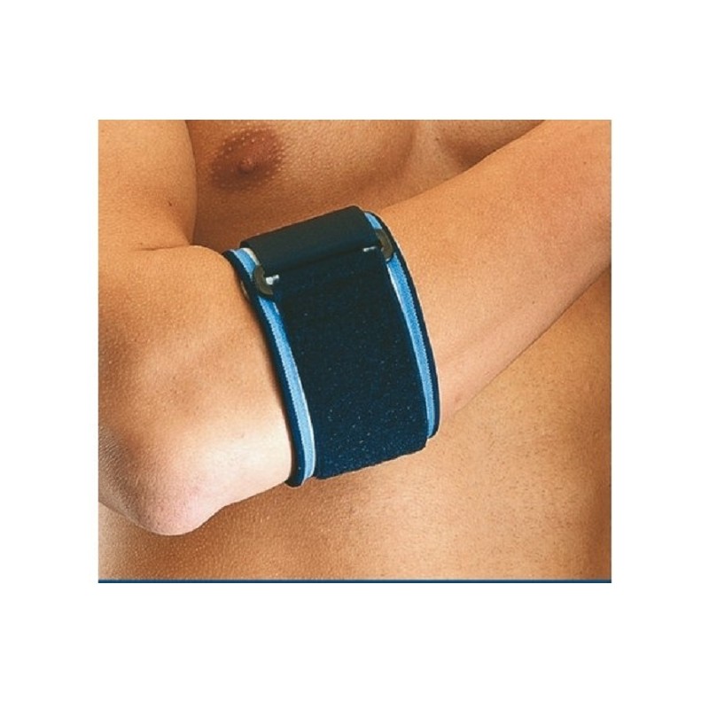 Fixed, self-adhesive epicondylitis strap with two removable pressure pads. It has a double Velcro closure for better grip.