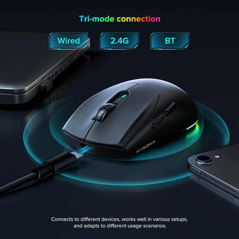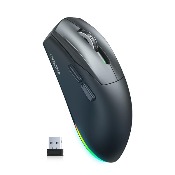 KYSONA Wireless Gaming Mouse, 12000 DPI, Tri-Mode Bluetooth Gaming Mouse Wireless, Lightweight, 80Hrs Battery Life, Backlight, 5 Programmable Buttons, Rechargeable Gaming Mice for PC/Mac, Black