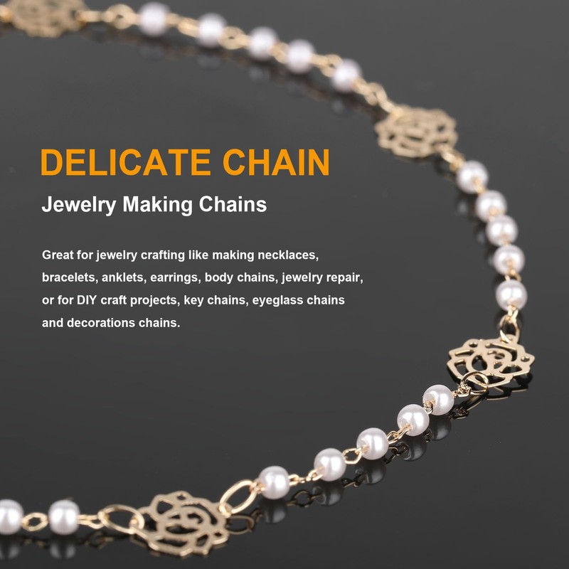 - Size--The size of the flower link is about 9.5mm long, 8.4mm wide; the diameter of the pearl bead is about 3mm wide; the length between two flowers is about 39mm; the diameter of the jump ring is about 5mm, 0.7mm thick; lobster clasp length is about 10mm. Enough length chains can meet your various needs.