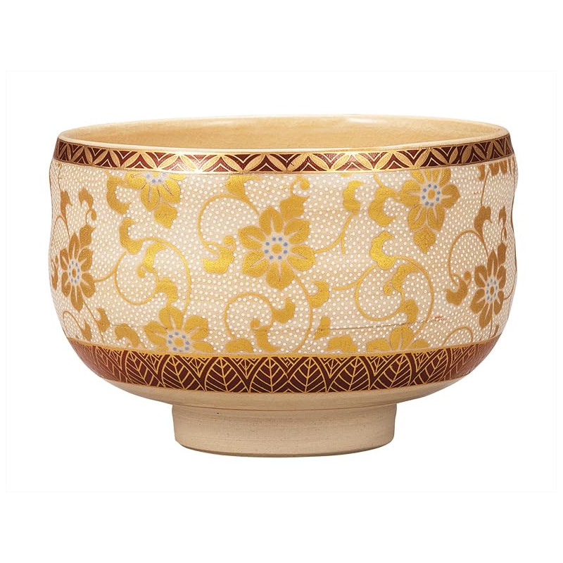 Kyutani Yaki K9-880 Matcha Bowl, White Tesen Granules