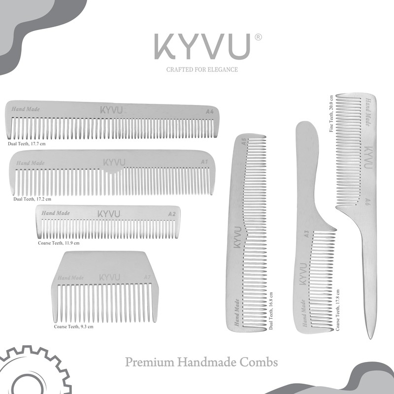 KYVU A6 handgefertigter 20 cm feiner Zahn-Aluminiumkamm mit Griff