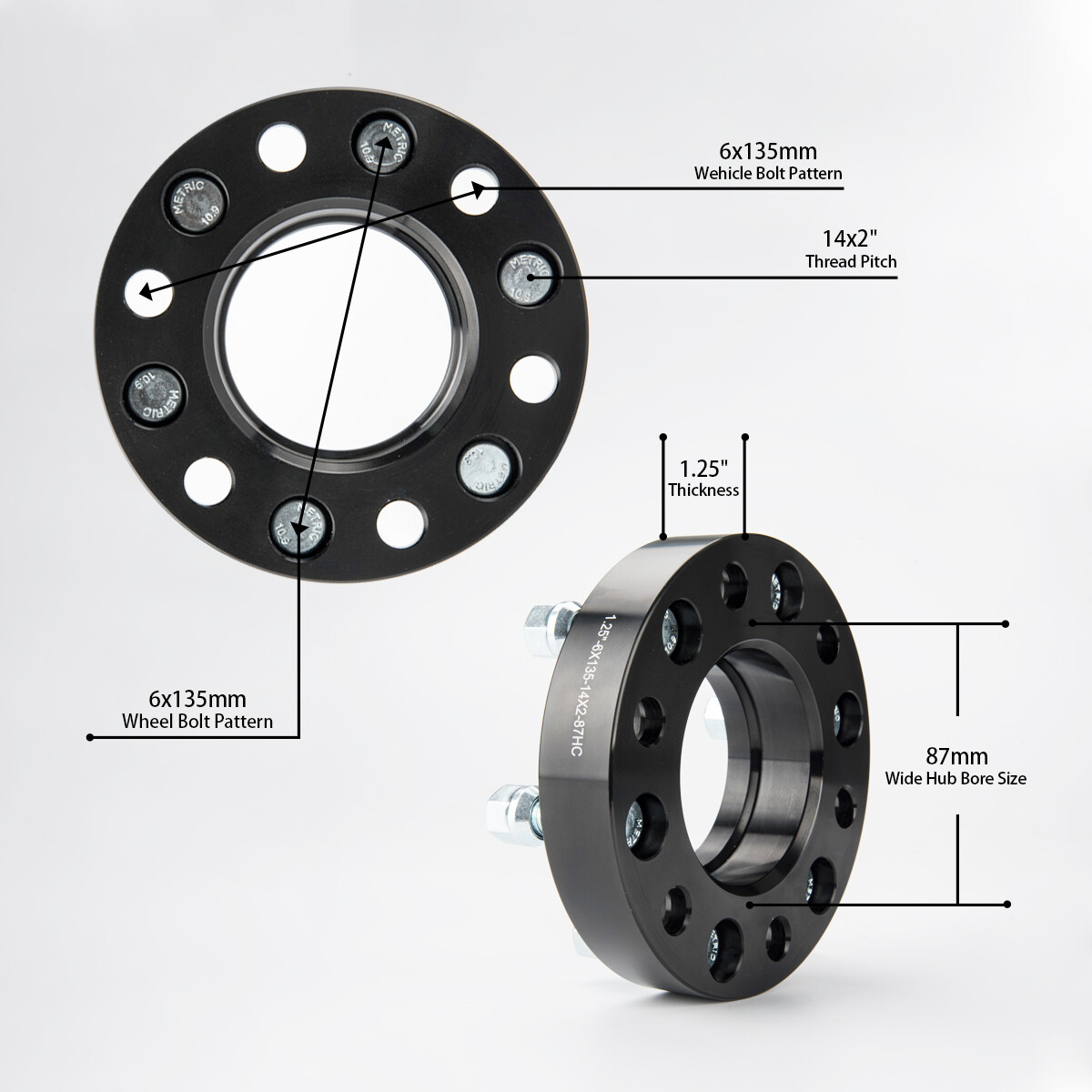 Specification: Wheel bolt pattern: 6x135 Vehicle bolt pattern:6x135 Thread Size:14*20 Spacer Thickness: 1.25" Color:Black