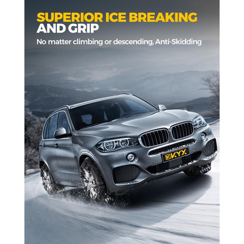 • 【Enhanced grip】The unique design of the snow chains provides excellent traction on ice and snow, preventing slipping and ensuring safe driving.