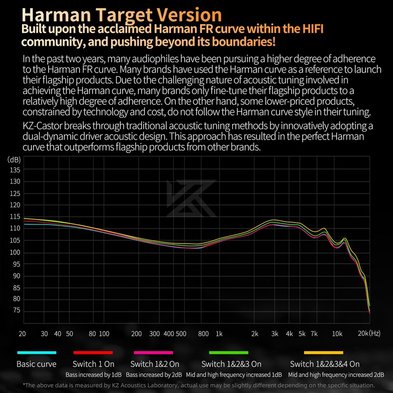 - 【Improved Bass Version Herman Target】kz castor earbuds are customized for audiophile who demand deeper bass, based on Herman's FR curve to enhance low frequency sensitivity and dynamic performance for an unstoppable low-frequency experience. At the same time, the mid-height range is seamlessly aligned to the Herman's FR curve to create a breathtaking super bass experience like never before