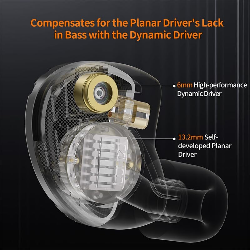 • 【6mm High-performance Dynamic Driver】 The Dynamic Driver Compensates for the Planar Driver's Lack in Bass with the Dynamic Driver. Working in synergy with the planar driver, the 6mm high performance dynamic driver of KZ Symphony sports audiphiles earbuds is responsible for the bass, achieving a pure and elastic bass performance.