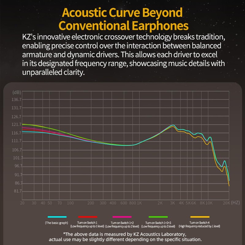 - "4-level custom tuning switch kz headphones To meet the diverse demands for sound quality ,we've specially designed a 4-level custom switch.whether it's clear vocals,deep bass,or rich chords ,it effortlessly caters to your prefessional creator,you can find your unique sound signature through this intricate audio control"
