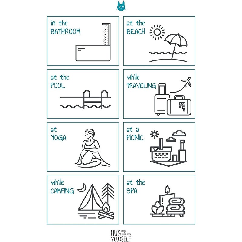 - LARGE & LIGHTWEIGHT - This oversized extra-large Turkish towel ( 70x40''/180x90cm) takes up less space in a bag. Roll up neatly to pack & go. Perfect for hammam, beach, pool, spa, sauna, gym, yoga, travel, camping and picnic. Less storage space, take up about a quarter of the space of a traditional plush towel. Easily stack on small bathroom display shelves or hang on wall-hooks.