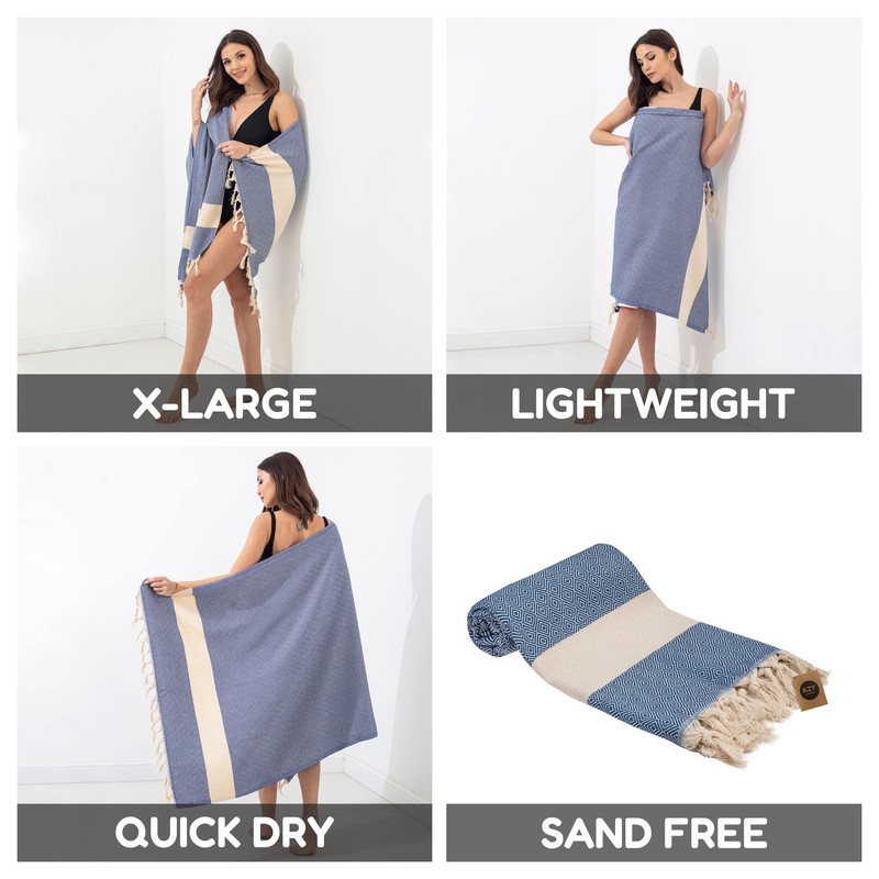 - PERFECT FOR THE BEACH - The perfect new sand free beach towel, so ditch your heavy sand-covered towel and streamline your summer. Turkish towel range is perfectly suited for the bathroom and outdoors. Can be used on the beach, in the home or in the park.