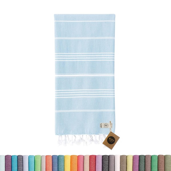 KZY LONDON Beach Towel - Large Turkish Beach Towels for Camping, Swimming, Bath, Gym, Picnic - Quick Dry, Super Absorbent, Lightweight, Cotton Hammam Towels for Adults, Men, Kids (Light Blue)