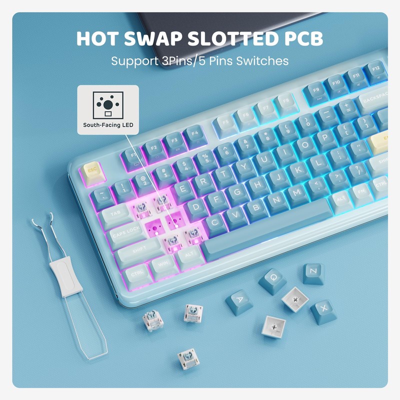 - Hot-Swappable Linear Switches: Enjoy the flexibility of hot-swappable custom Linear switches on the creamy keyboard. These switches provide a smooth and consistent keystroke, perfect for both fast typing and gaming. Easily switch them out to customize your keyboard without the need for soldering.