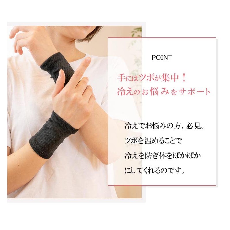 玉川温泉岩盤浴シリーズの手首サポーターは、日本製のメンズとレディースが兼用です。女の子にも留意しております。ロングで、ずれない、しっかりサポート、夏は冷房対策、冬は保温対策のための手首サポーターです。UVカットも施してあり、うすい、おしゃれ、かわいい、薄手であることが特徴です。こむら返りにもおすすめです。女性の温活や冷え取りにもおすすめです。バレエなどのスポーツでのふくらはぎの違和感、むくみ、疲労回復にも利用されています。人気の理由は、玉川温泉の岩盤浴で利用されている北投石の原石を練り込み加工していることです。その北投石は、岩盤浴でも有名な遠赤外線が放出されており、また森林浴と同じレベルのマイナスイオンが放出されていることです。おやすみの前に利用されることをおすすめします。 ※ 健まーる加工時に業務用のアイロンで熱処理する工程で、製品にアイロン跡がどうしてもついてしまいます。不良品ではなく製品工程でついてしまうものですので、ご理解の上ご購入をご購入ください。