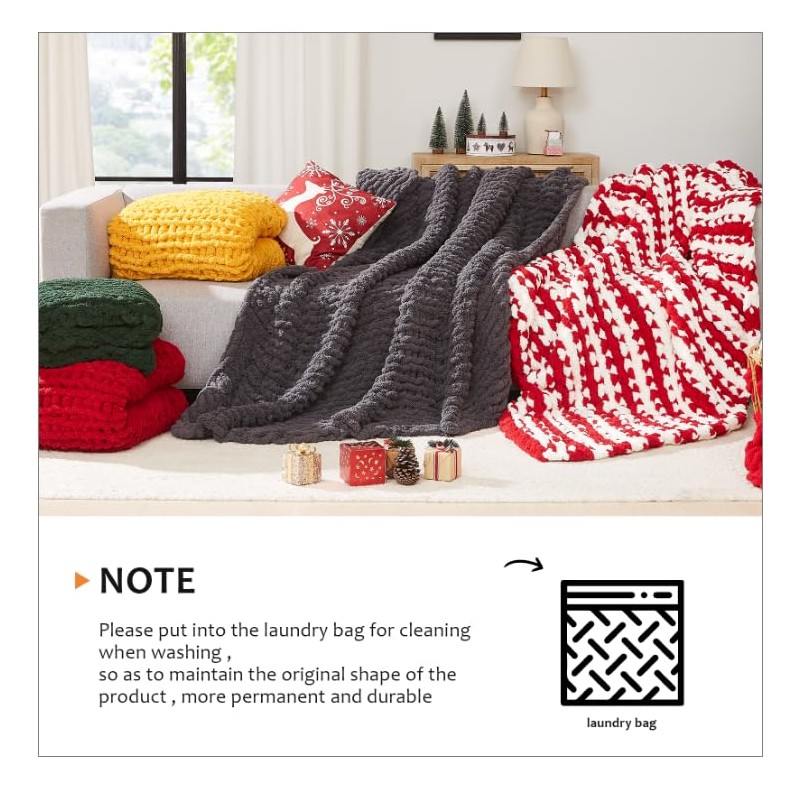 - Machine Washable Blanket: Our chenille throw blanket is machine washable, we recommend putting it in a laundry mesh bag to prevent tangling and damage, air dry or tumble dry low, use a neutral detergent, do not soak for a long time, do not bleach or iron