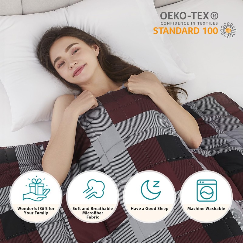 L'AGRATY Weighted Blanket - 48"x72" 15lbs Cooling Breathable Heavy Blanket Microfiber Material with Glass Beads for Adult All-Season Summer Fall Winter Soft Thick Comfort