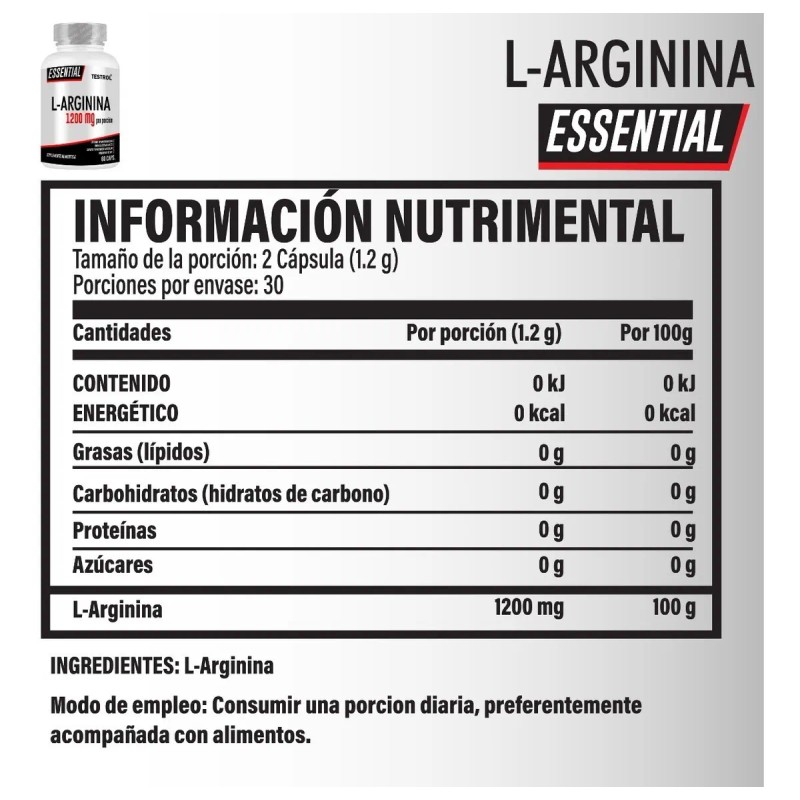 L-arginina 1200 Mg Testrol Essential 60 Caps Sin sabor