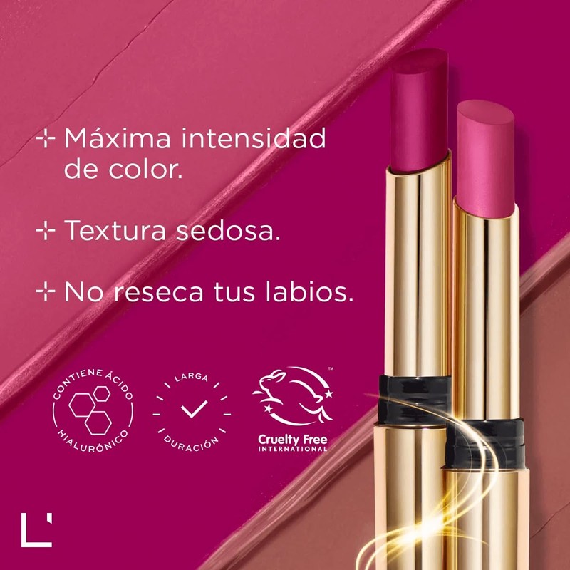 • 16H de color duradero* e hidratación con ácido hialurónico. *Prueba de duración en Lab. Efisen (Colombia, 2019)