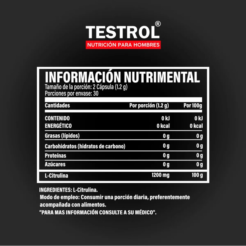 L-Citrulina 1200mg Testrol Essential 60 Cpsulas - Producto Original de Alta Calidad, Entrega Rápida y Segura, Garantía Incluida