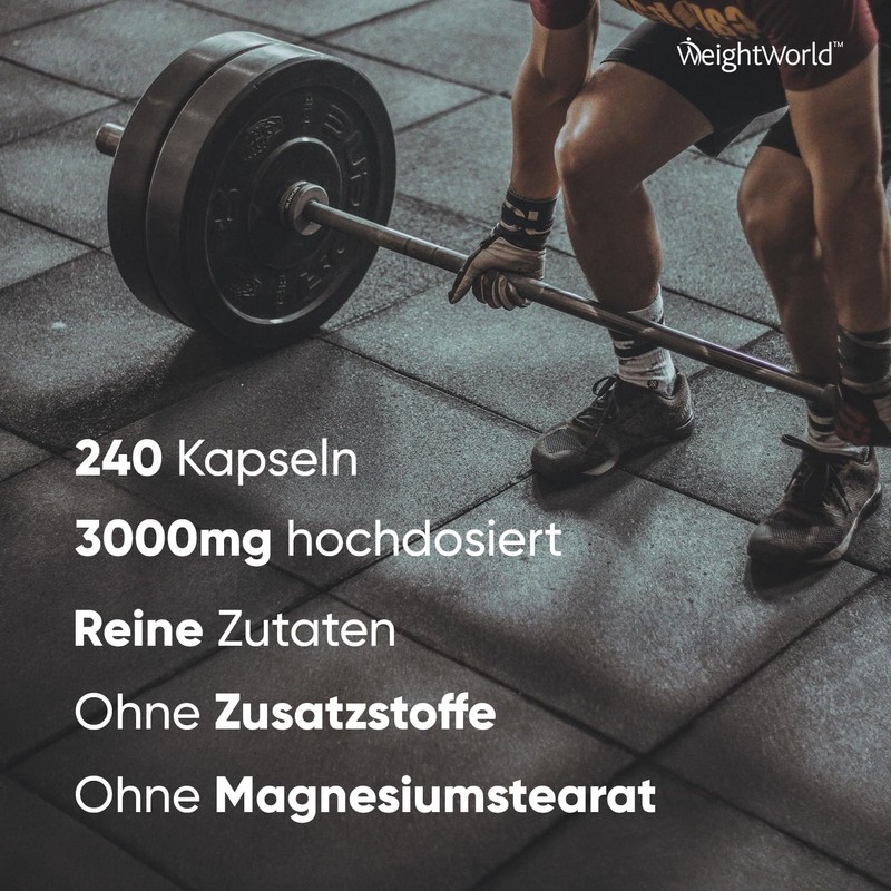L-Citrullin 3000mg - Ideal für Sportler, Fitness, Pre & Post Workout - 240 vegane Kapseln - Alternative zu Kreatin, L-Arginin & L-Taurin Kapseln & Pulver - Aminosäure von WeightWorld