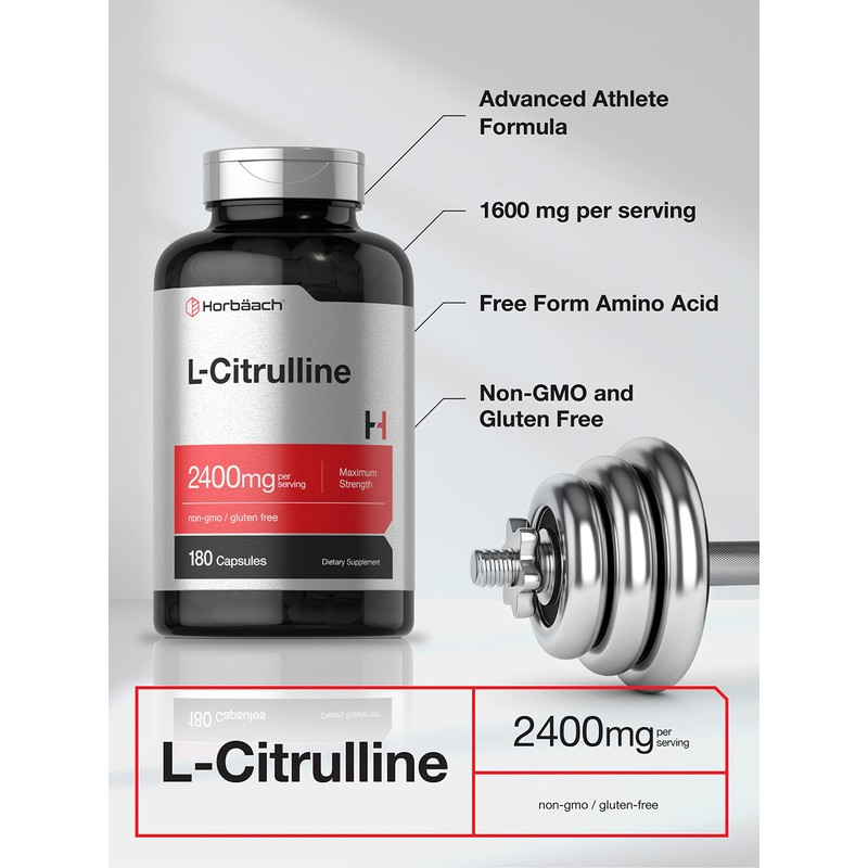 L Citrulline Capsules 2400mg per Serving | 180 Count | Maximum Strength, Free Form Amino Acid | Non-GMO, Gluten Free L-Citrulline Supplement | by Horbaach