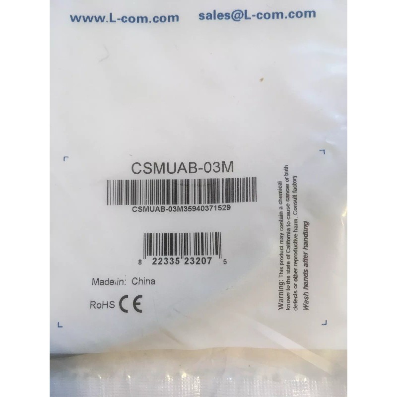 L-COM CSMUAB-03M CABLE 12 Inch “NEW” in original packaging comes as you see in pictures.
