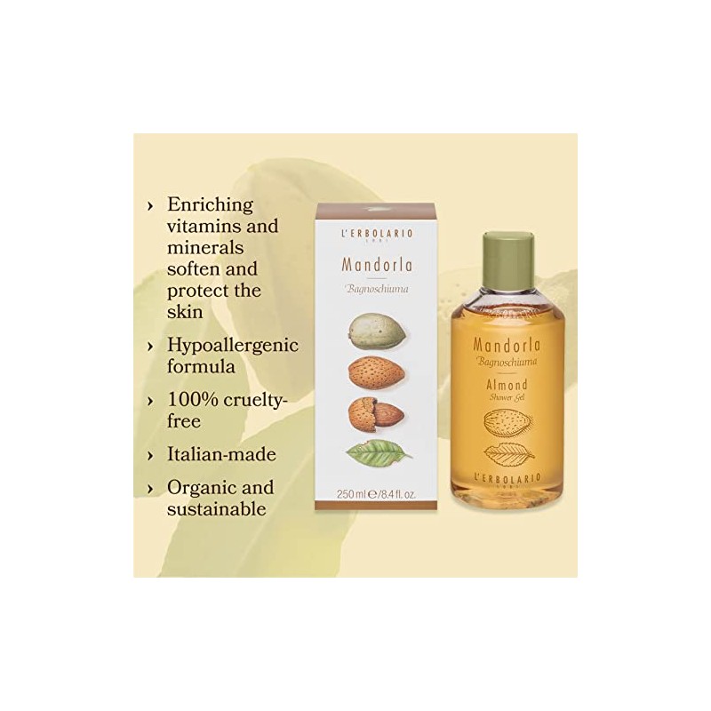 L'Erbolario Almond Shower Gel - Rich, Creamy Foam - Sensual Fragrance - Moisturizes The Body While Delicately Cleaning It - Makes Skin Smooth And Velvety To The Touch - Long Lasting Scent - 8.4 Oz