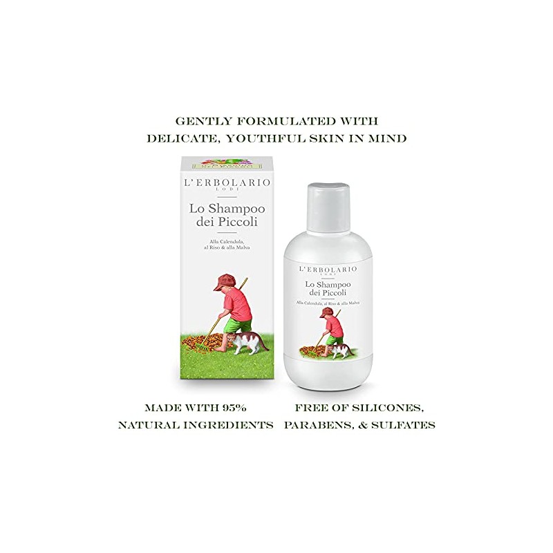 L'Erbolario Shampoo For Babies - With Marigold, Rice And Mallow - Leaves Hair Clean And Shiny - Reinforcing Natural Hydration - Does Not Compromise The Scalp’s Sebaceous Protection - 6.7 Oz