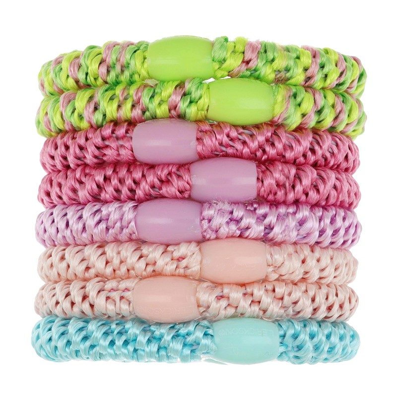 • Product Features:- Imported by L. Erickson - Set of 8 ponytail holders- Each pony features ornamental oval bead- Strong elastic hair band for all hair types- Dimensions: 2" diameter, 3/8" wide band
