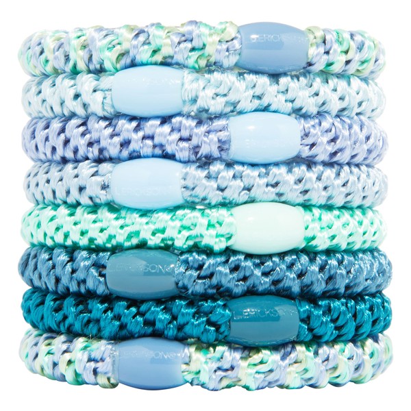 - Product Features:- Imported by L. Erickson- Set of 8 ponytail holders- Each pony features ornamental oval bead- Sturdy elastic is great for all hair types- Dimensions: 2" diameter