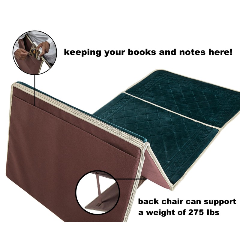 - [Pocket] : There is a small back pocket on the back of the prayer mat. Try keeping your books and notes here!
