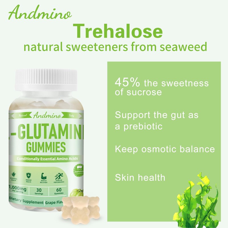 - Andmino Gummies with Trehalose: Trehalose is a healthy sweetener, the sweetness of trehalose is 45% of sucrose. Trehalose benefits to gut health and has antioxidant properties