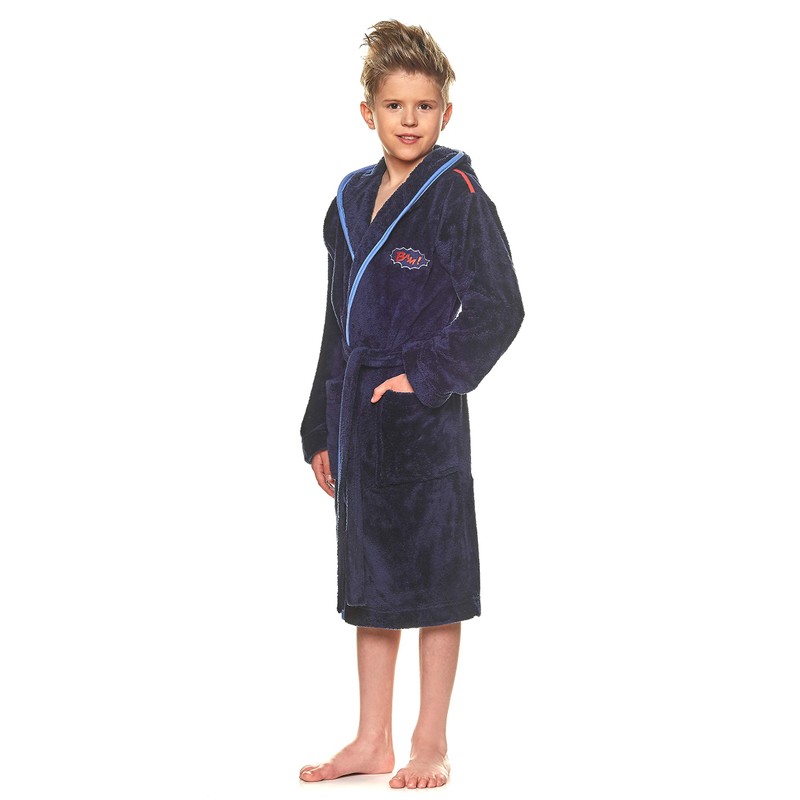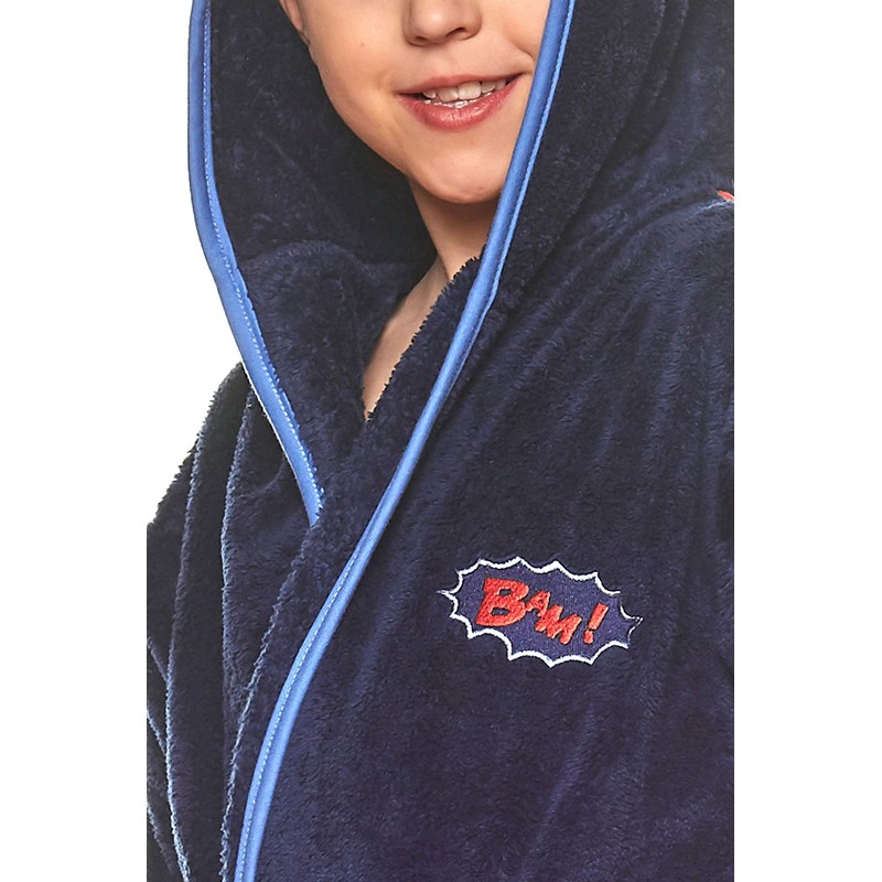 - Details: selected details make the difference: trendy embroidery, 2 pockets, tie belt and large hood. This makes the dressing gown for boys a premium class product.