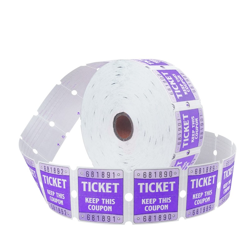 - Purple raffle tickets double roll 2000 count and consecutively numbered
