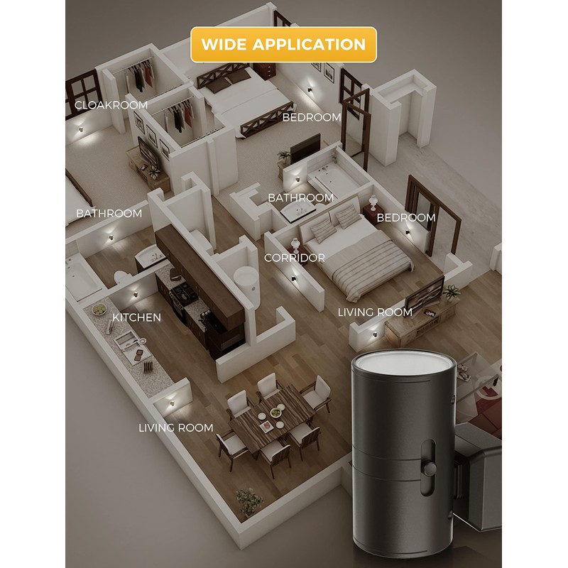 Featuring a high-quality black frame and daylight white light, this modern night light can be used in hallway, bedroom, bathroom, kitchen, stairway, etc.