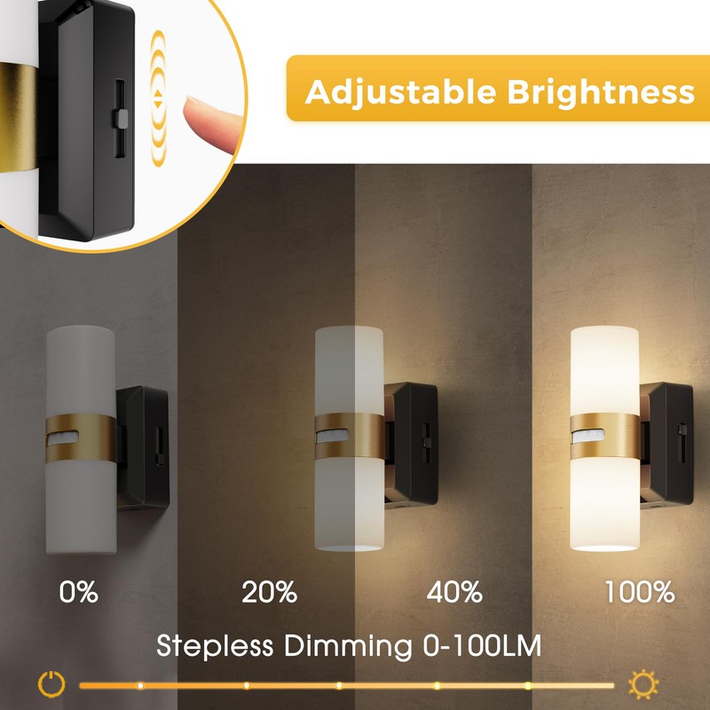 - Dimmable Night Light: The wall light adjustment button can be adjusted from 0-100LM, which can meet your different needs.