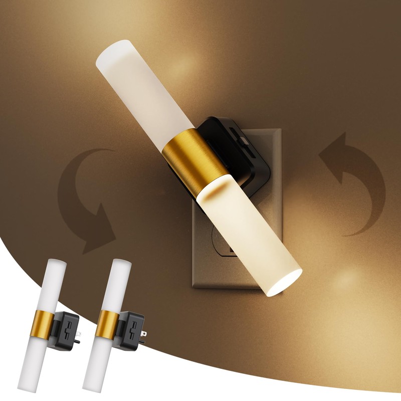 - Modern Night Light: Featuring a contemporary wall sconce-inspired design, this nightlight provides dual-directional illumination, casting upward and downward light. Enhanced with a gold ring, it seamlessly blends functional lighting with sophisticated decor, adding elegance and refinement to modern interiors