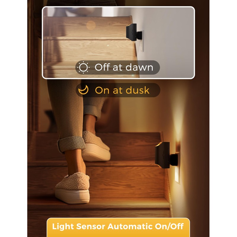 - Protect Your Eyes - LED night light with light sensor produces a soft glare-free illumination to your family. Especially suitable for those children or elderly people who are afraid of the dark.