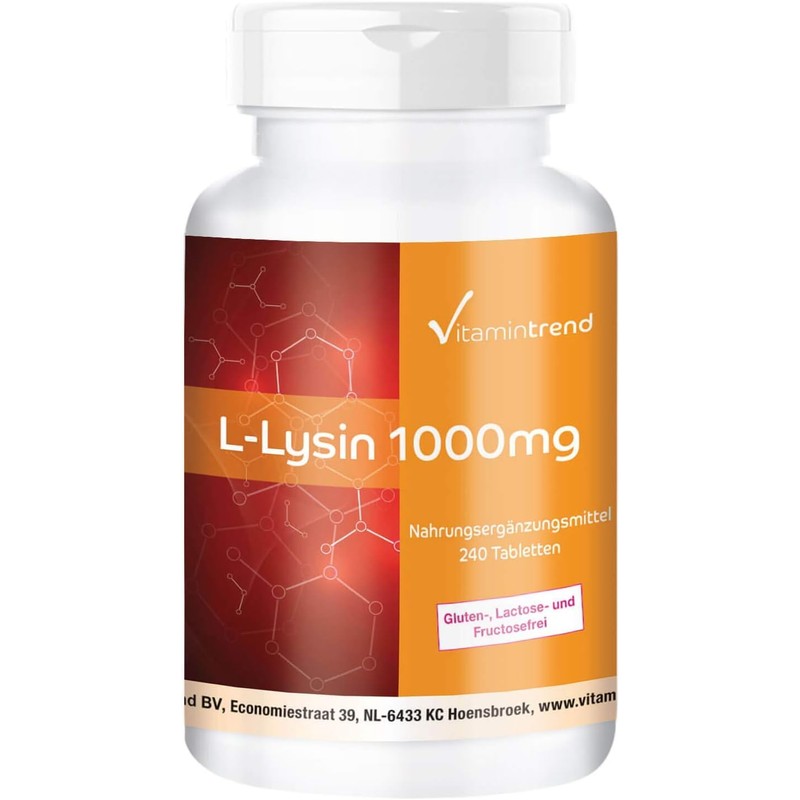 - Vitamin trend German quality. One tablet contains: 1250 mg L-lysine hydrochloride, of which 1000 mg L-lysine - recommended daily dose: 1 tablet daily with a meal with plenty of water - highly dosed active ingredient - excellent value for money.