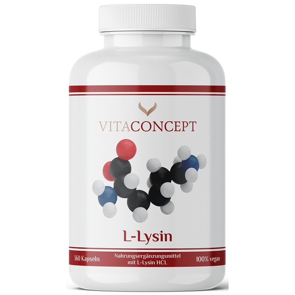 L-Lysine I 360 Capsules I 800 mg Pure L Lysine from 1000 mg L-Lysine HCl/Day I High Dose I From Vegetable Fermentation I No Genetic Engineering I Vegan I No Unnecessary Additives I VITACONCEPT