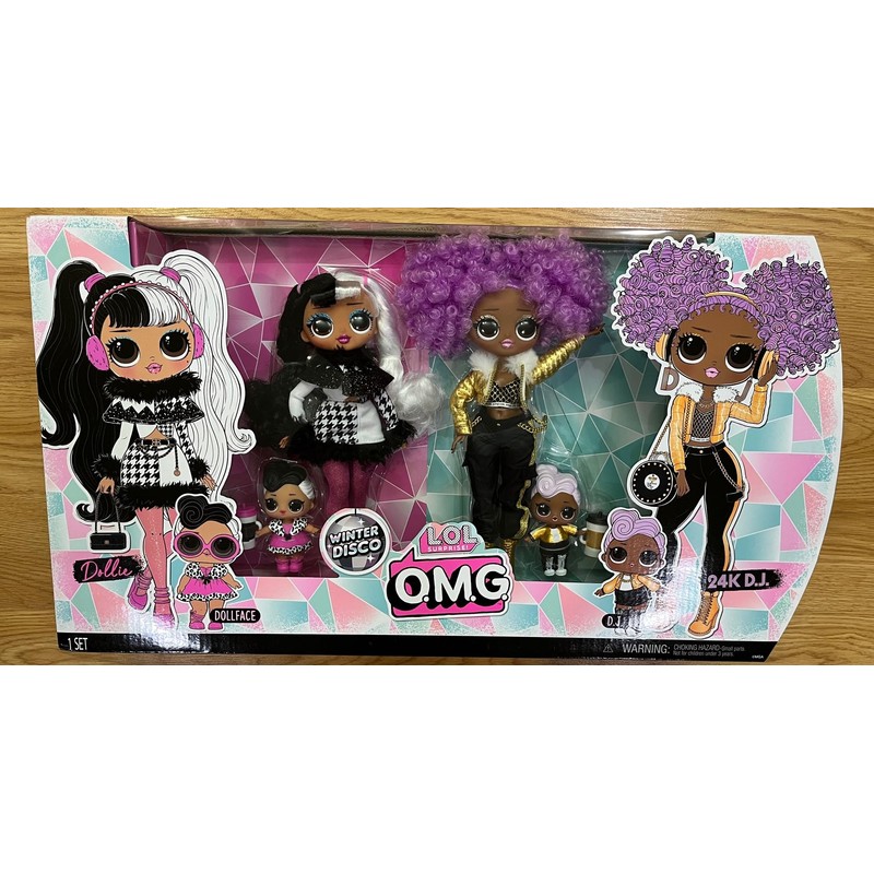 O.M.G! Dollie and 24K D.J. are ready to slay the Winter Disco. When the stars come out and the disco ball drops, we’ll hit the dance floor. We can’t wait to chill out and boogie down with all our BFFs for the party of a lifetime! Collect fan favorite L.O.L. O.M.G. Surprise! Winter Disco fashion dolls Dollie and 24K D.J. in a brand new 2-pack! Chill out with Dollie, big sis to Dollface, who loves matching and being bold! Then make some beats with 24K D.J., big sis to D.J., who loves spinning records and getting everyone on the dance floor! Unbox 35+ Surprises including 2 fashion dolls, 2 Tot dolls, cute fashion looks, shoes, purses, accessories, hairbrushes, and doll stands. Dollie comes with black and white, checkered and houndstooth fashions, stockings, gloves with faux fur trim, phone case purse, accessories, earrings, Mary Jane shoes, and more! 24K D.J. comes with black and gold, casual, cool fashion, gold, faux fur trim jacket, record-themed purse, accessories, personalized DJ earrings, boots, and more! Have these gorgeous fashion dolls strike a pose on their included doll stands. Each OMG fashion doll comes has stunning features, with beautiful hair, fabulous winter styles, and articulation for tons of poses! These two Winter Disco stars are ready to chill out and boogie down!