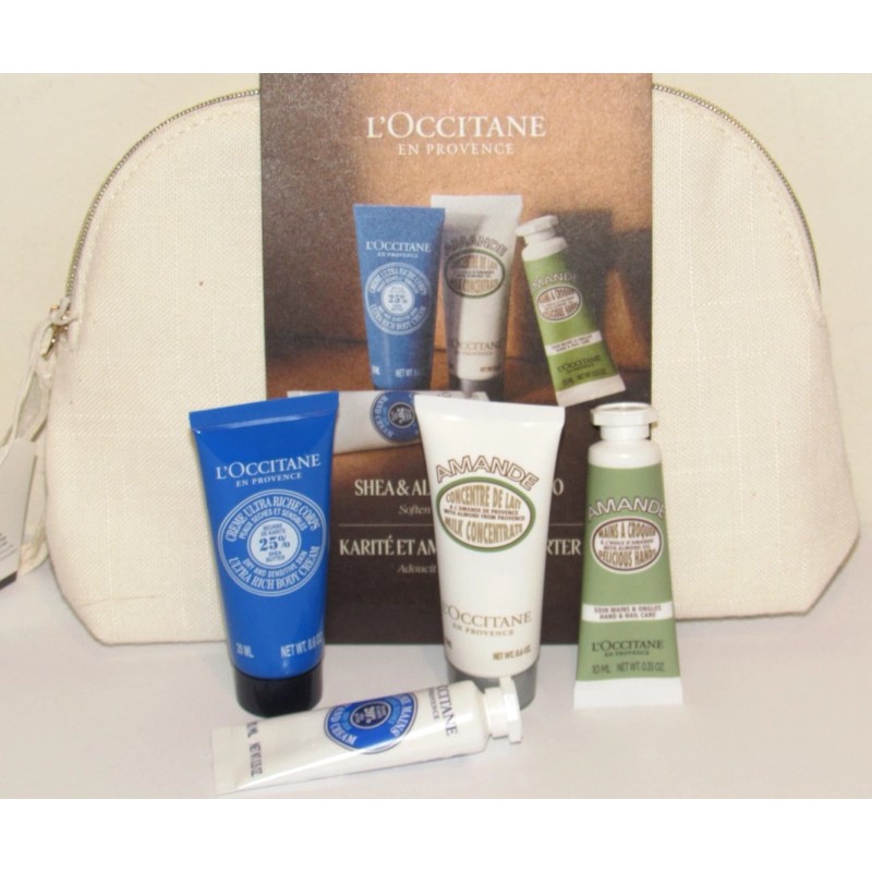 Brand new and authentic- L'Occitane Shea & Almond On-The-Go Set. 5 piece set of mini travel sizes.