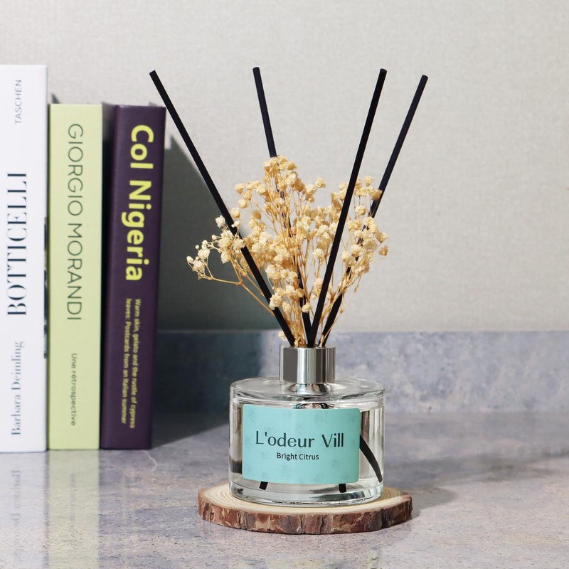 L'odeur Vill Reed Diffuser Set, 6.7 oz(200ml) Bright Citrus Scented Diffuser with 6 Oil Diffuser Sticks, Home Fragrance Essential Oil Reed Diffuser for Home Large Rooms Bathroom Shelf Decor