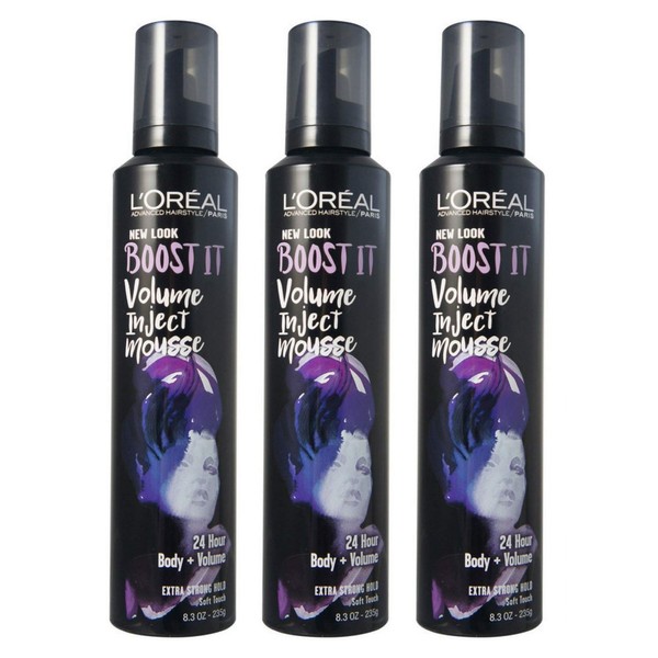 L'Oreal Advanced Hairstyle/Paris - Boost It Volume Inject Mousse - Extra Strong Hold - Net Wt. 8.3 OZ (235 g) Per Can - Pack of 3 Cans