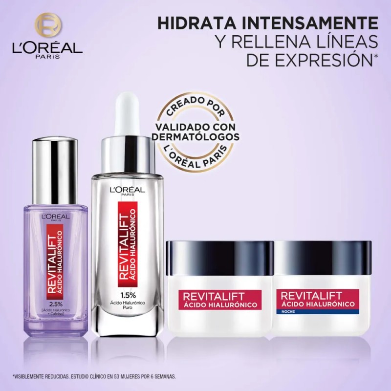 Hidrata intensamente durante 24 horas y rellena líneas de expresión con la poderosa acción del ácido hialurónico.