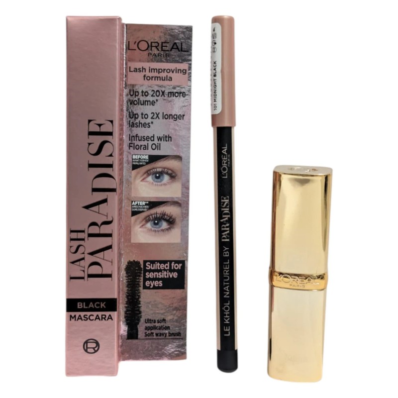 L'Oréal Loreal I Am Worth It Nudes Set Black Mascara Black Eyeliner & Nude Lipstick