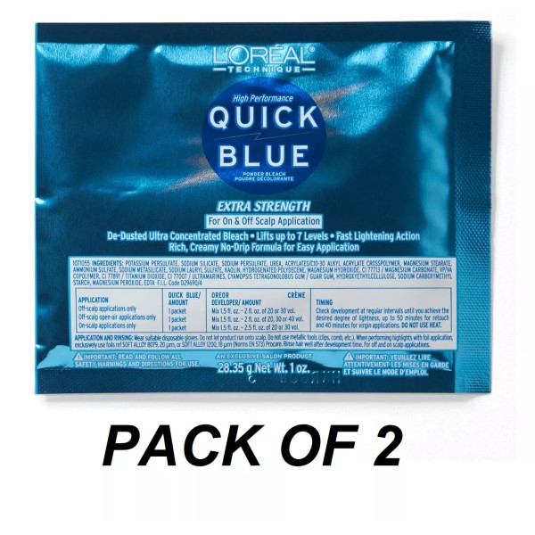 L'Oréal Loreal Quick Blue Bleach Powder Lightener Packette 1 oz (Pack of 2)