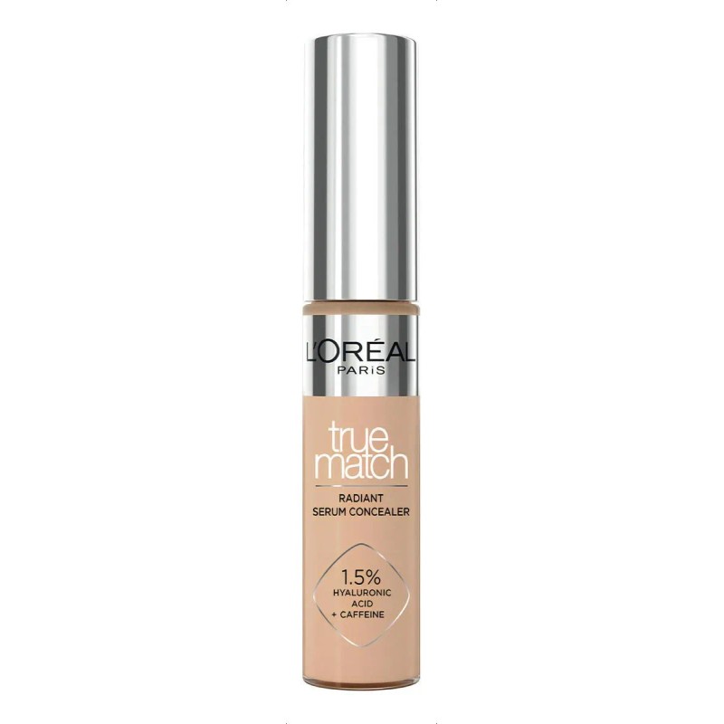 Descripción Limpia: Conoce el corrector True Match Radiant Sérum Concealer de L'Oréal Paris que cubre las ojeras, corrige imperfecciones y además puedes utilizarlo para definir tu rostro contorneando e iluminando zonas con alguno de sus 9 tonos disponibles. Su fórmula está infusionada con 1.5% de ácido hialurónico y cafeína, ideal para hidratar la piel y rellenar las líneas de expresión. Te encantará su aplicador en forma de plancha para una aplicación precisa en ojeras o multiusos, además es ideal para cualquier tipo de piel con su acabado natural radiante. ¡Corrige como un corrector, cuida como un sérum de ojos! Completa tu rutina con los demás productos de True Match de L'Oréal Paris.